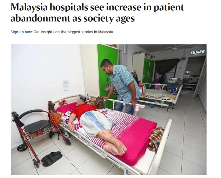 Hundreds of elderly patients are abandoned in Malaysian government hospitals (GH) annually.