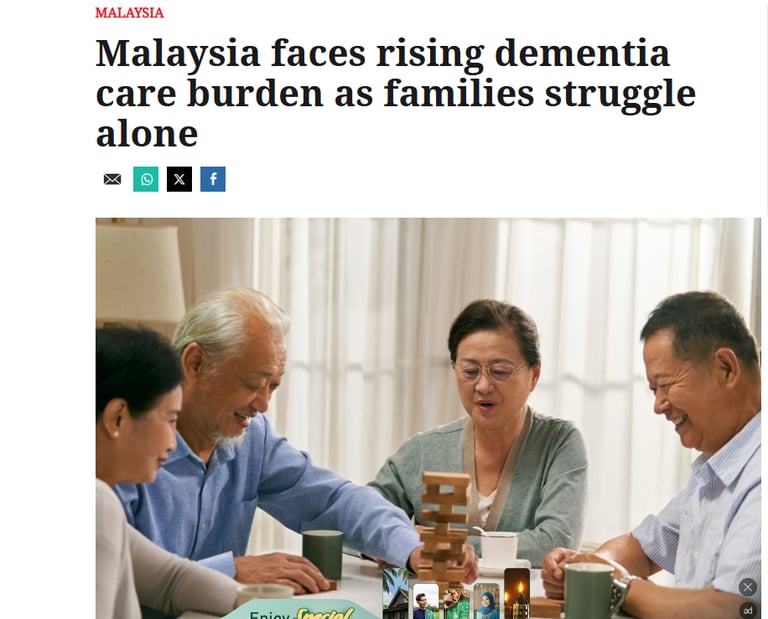 Nearly 40% of family caregivers in Malaysia suffer from clinical depression.